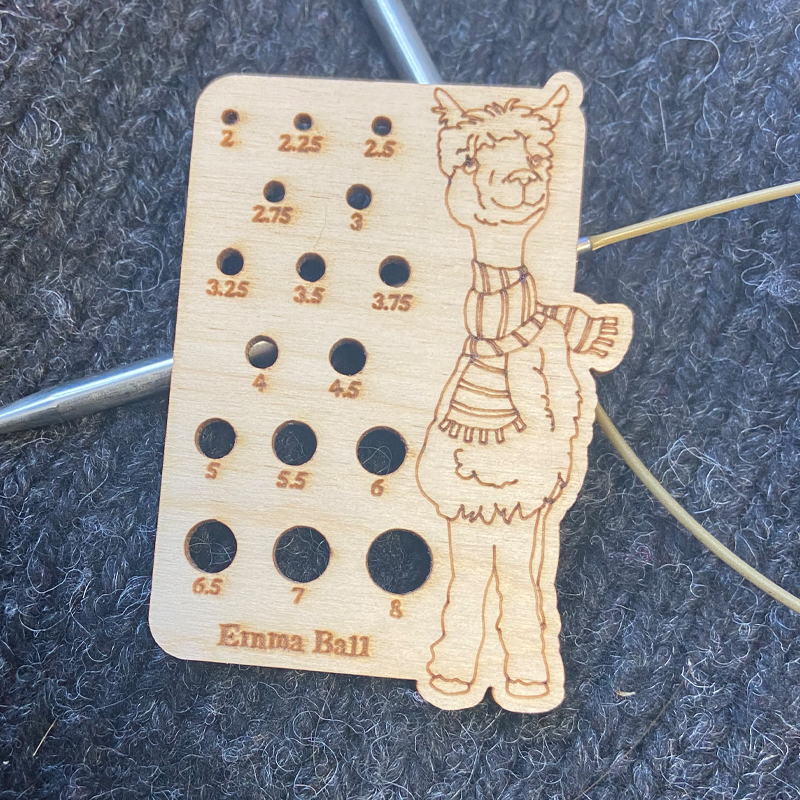 Sized 76mm x 50mm, these laser-cut wooden knitting needle gauge is the perfect accessory for any knitter. Handy for those needles that are always being used and the sizes have rubbed off! The gauges are UK-MADE and designed by Emma herself 🙂