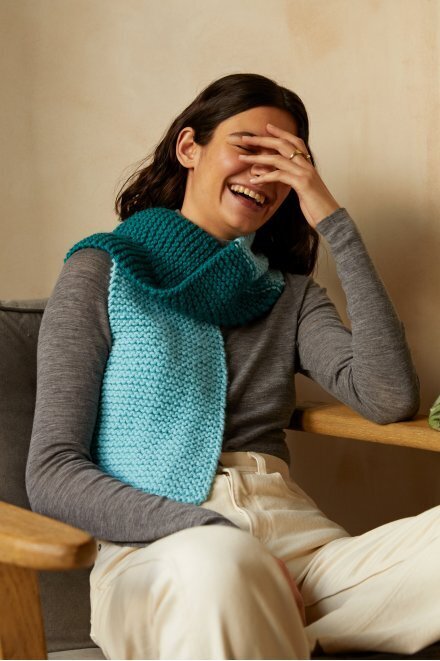 Discover a hobby that feeds your soul. Create a calming two-colour scarf with simple, repetitive stitches. This simple knitting kit includes step-by-step instructions, making it easy to relax as you make this timeless, teal blue scarf.