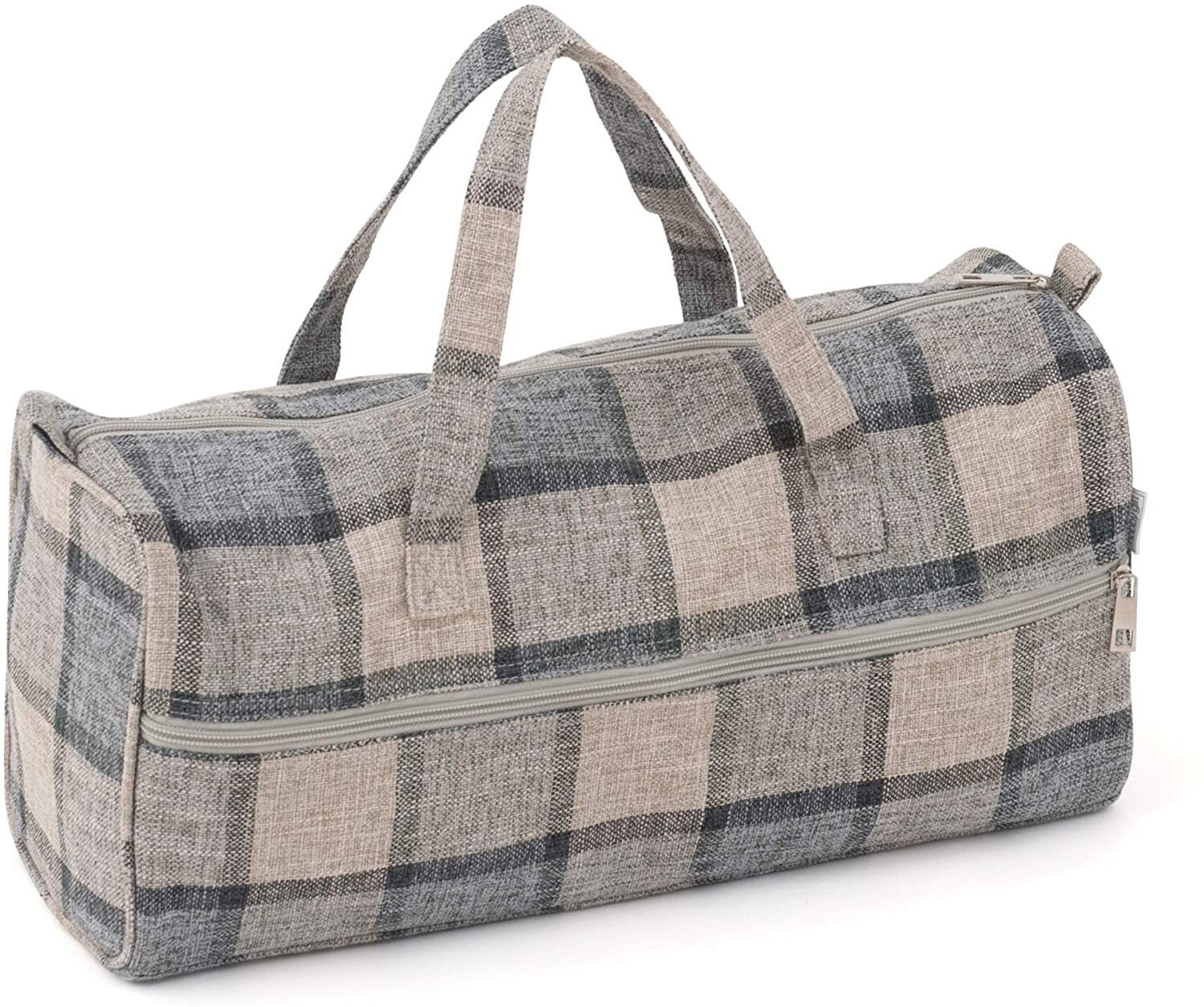 Knitting bag made from 100% cotton fabric with a polycotton lining. Zip up pocket on the front and with double handles. Eyelet for feeding through yarn. Perfect for storing knitting projects, yarn and pins up to 40cm long.