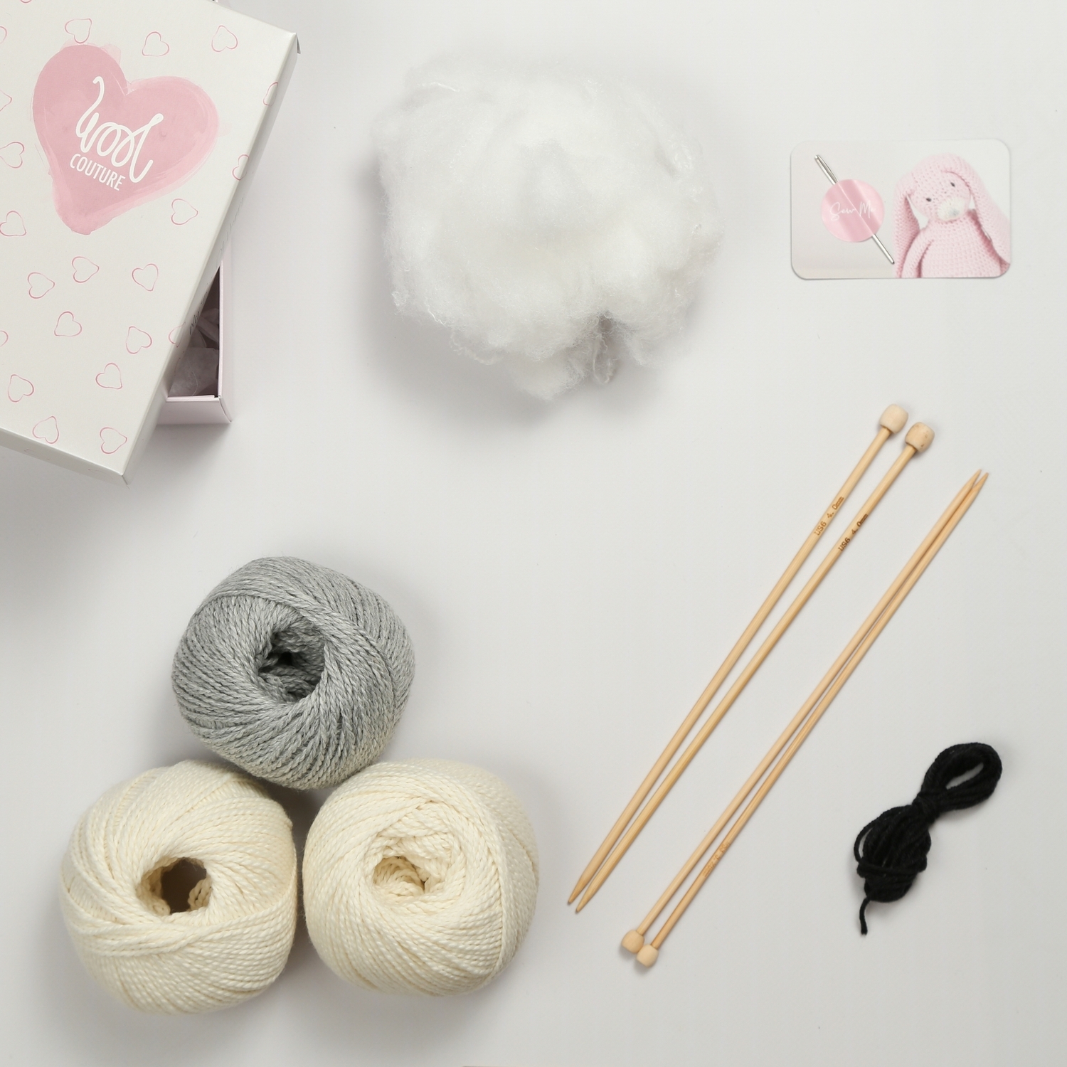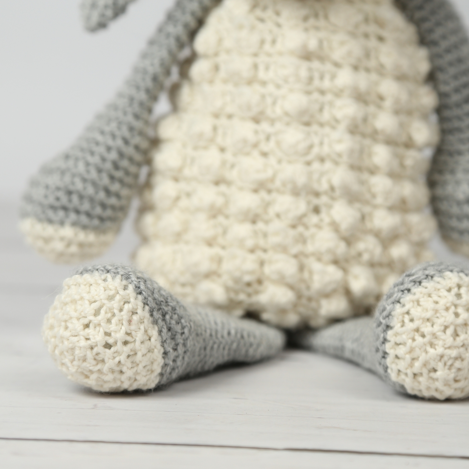 Lionel is based on our original Lionel Lamb crochet kit, but one of our clever knitting designers has been able to make this into a knitting kit! We love the talented people we work with!