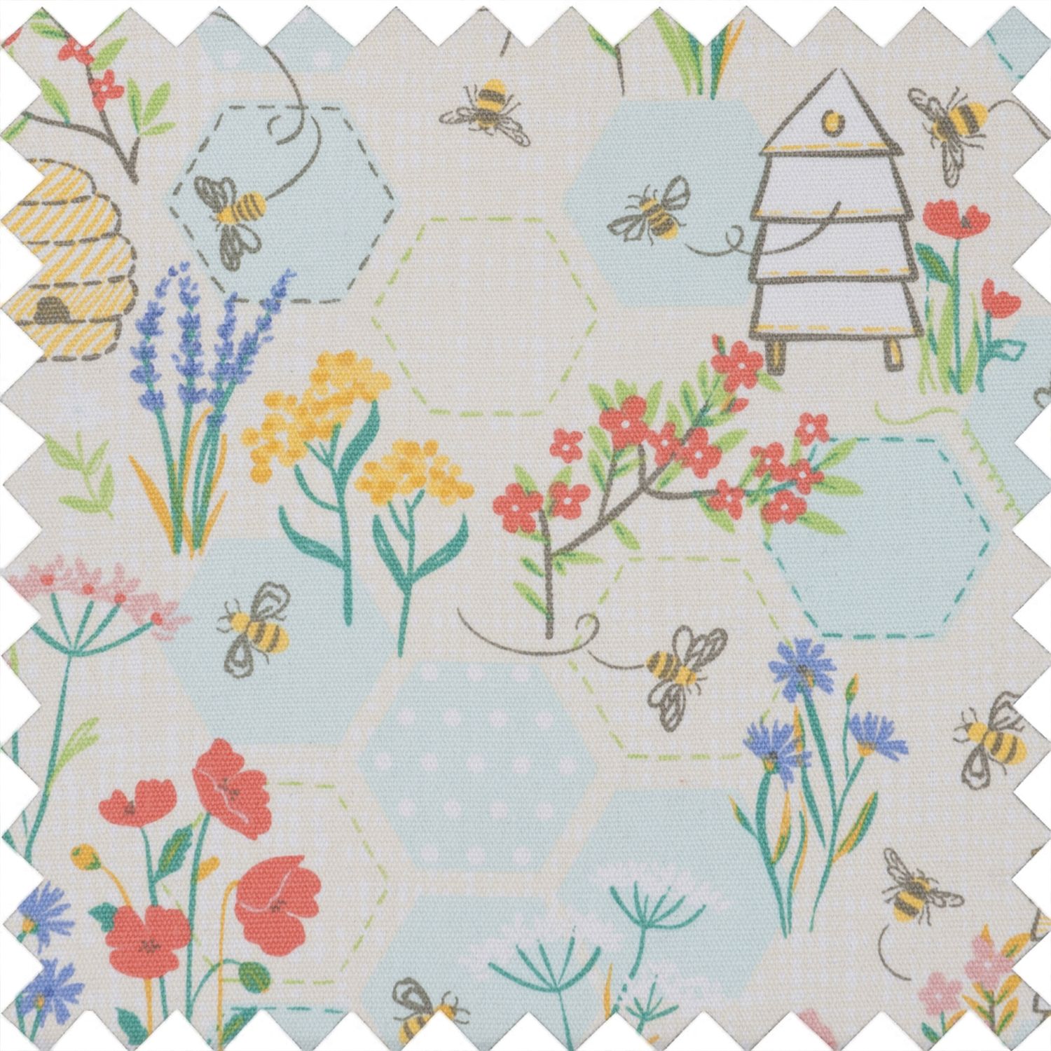 Knitting bag made from 100% cotton fabric in a fresh, sewing bee print. Zip up pocket on the front and with double handles. Eyelet for feeding yarn through. Perfect for storing knitting projects, yarn and pins up to 40cm long. Spot clean only. Item size: (d/w/h) 16.5 x 45 x 19.5cm.