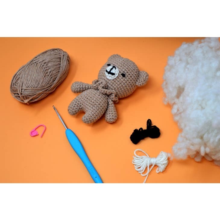 This kit contains everything you need to make your very own amigurumi Pouch Pal - Contents - Toy Stuffing, Pattern Leaflet, 100% Recycled Cotton Yarn, Accessories and Crochet Hook.