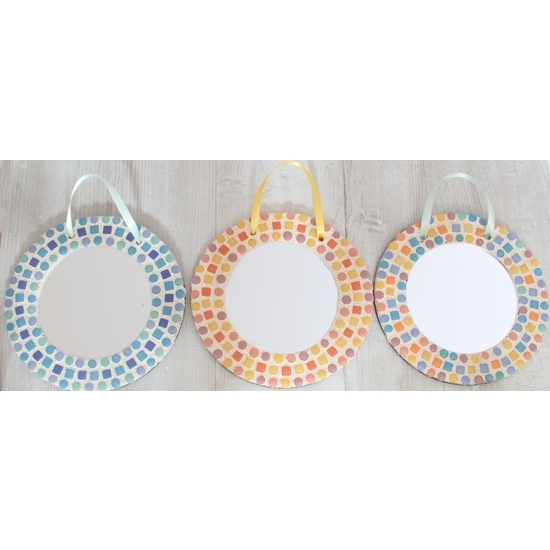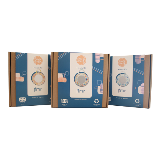 Create a fabulous mosaic mirror with this easy-to-use craft kit. This mosaic kit contains all the materials you need to create a 15cm dia mosaic mirror. Using shaped glass tiles and non-toxic grout is a perfect activity to bring out your creative side.