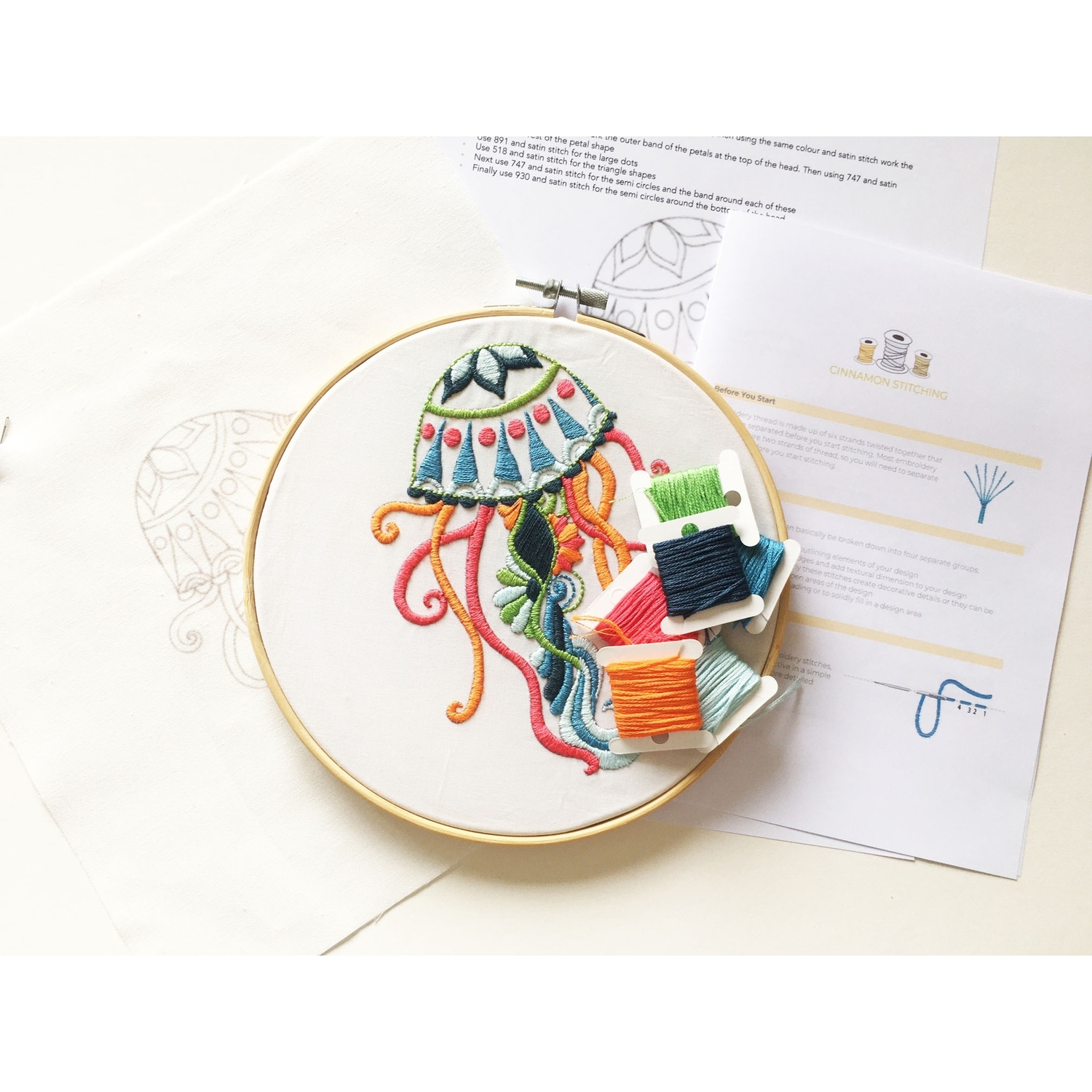 This bright jelly fish design hand embroidery kit is just what you need to keep the winter blues away.