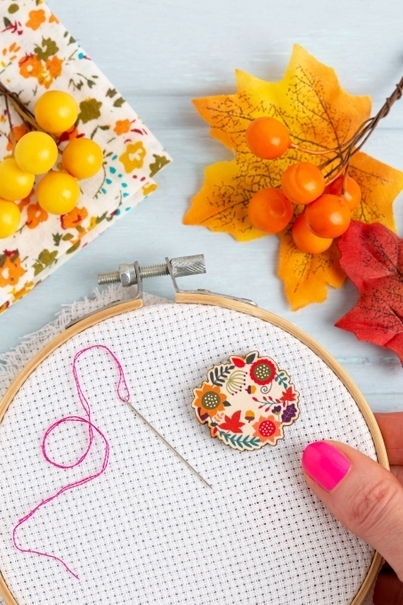 Autumn Leaves Needle Minder by Hawthorn Handmade